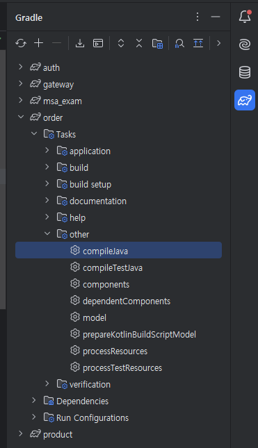 오른쪽 탭 Gradle로 들어가줍니다.