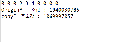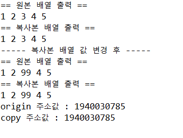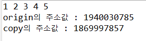 // int[] copy = origin; // 얕은복사 : 주소값 대입
