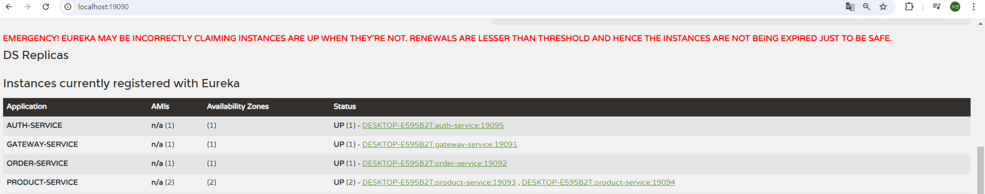PRODUCT-SERVICE 보면 포트가 2개의 인스턴스를 갖는다. -> 로드밸런싱